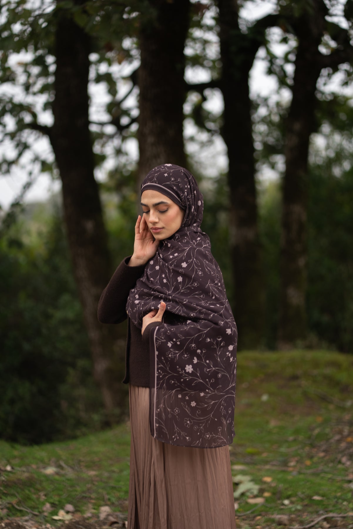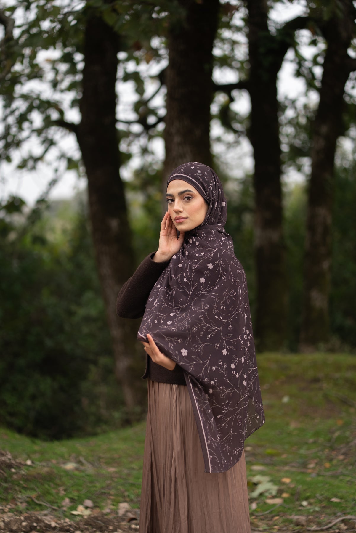 Celebrate elegance and natural beauty with the Mocha Branches Scarf , a refined scarf inspired by delicate floral patterns and warm earthy tones. Designed in a soft mocha shade, this scarf blends feminine charm with timeless sophistication.